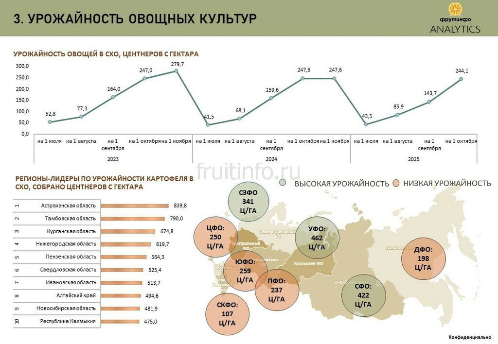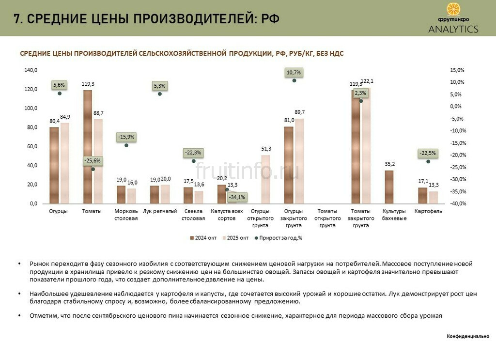 Информационно-аналитический отдел портала Fruitinfo.biz представляет своим подписчикам ежемесячный аналитический отчет о рынке овощей в России по итогам октября 2025 года.