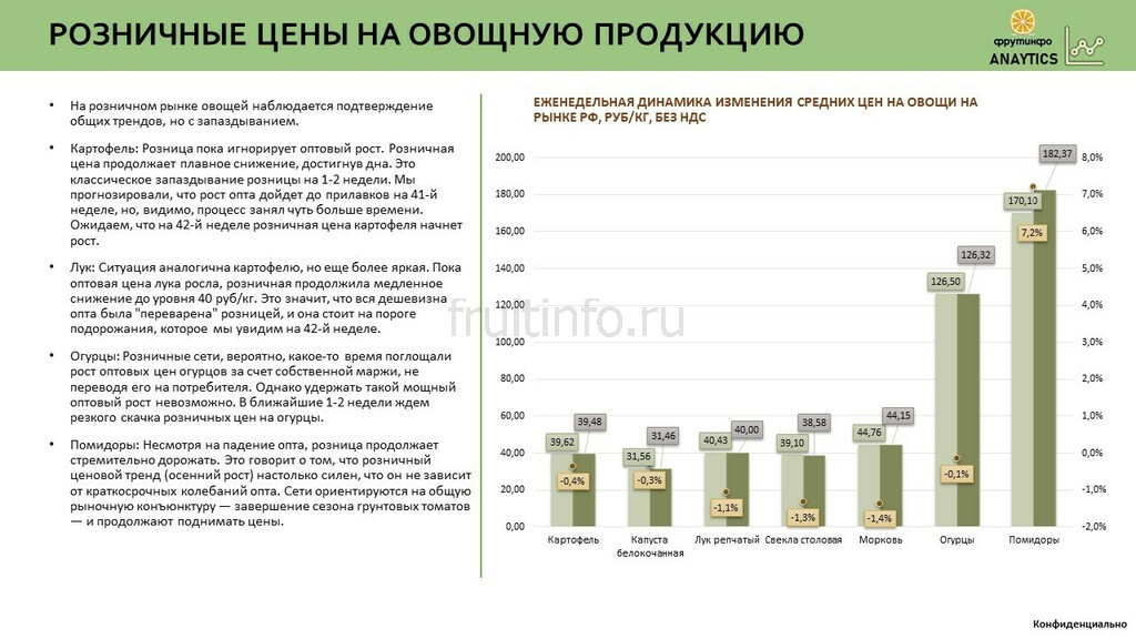 На розничном рынке овощей наблюдается подтверждение общих трендов, но с запаздыванием.