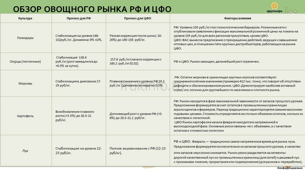 Еженедельные обзоры овощного рынка можно в рамках подписки.