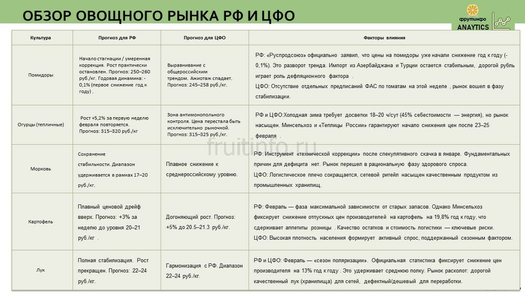 Еженедельные обзоры овощного рынка можно заказать у наших менеджеров.