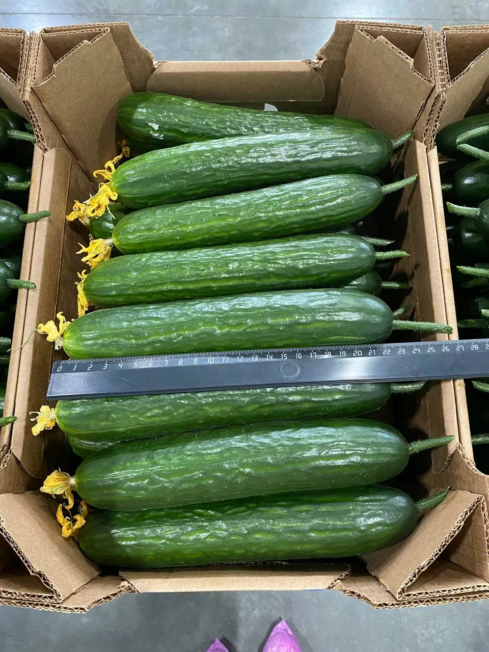 1) Огурец тепличный гладкий среднеплодный. Сорт Мева. 18-24см