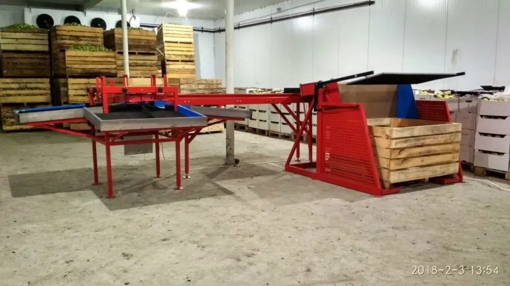 Столы устанавливаются на оптимальной, эргономичной рабочей высоте. Все детали, с которыми соприкасаются фрукты, отделаны резиной, для предотвращения повреждений.